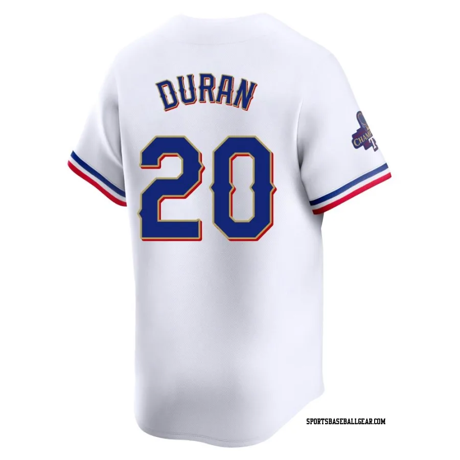 Get the Ezequiel Duran Men's Texas Rangers Gold Limited White 2024 Collection Jersey, showcasing the latest design and premium quality for dedicated fans. Elevate your baseball wardrobe now!