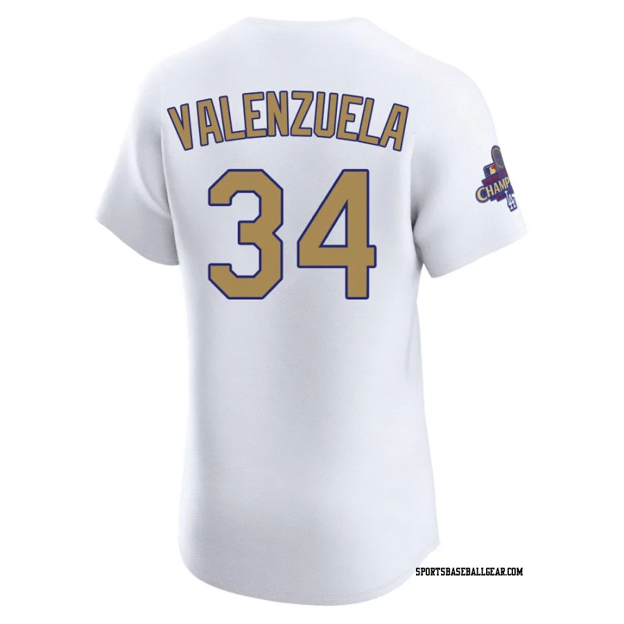 Fernando Valenzuela Men's Los Angeles Dodgers Gold Elite White 2025 Collection Jersey
