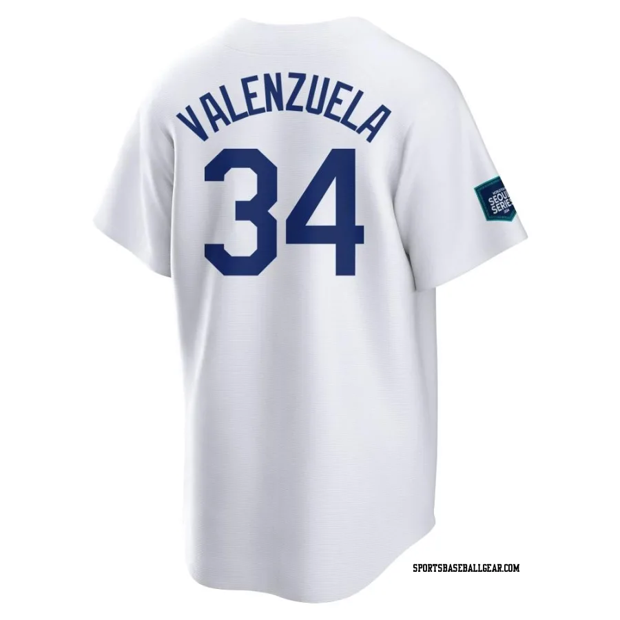 Get the Fernando Valenzuela Men's Los Angeles Dodgers White Replica 2024 World Tour Seoul Series Home Jersey, showcasing the latest design and premium quality for dedicated fans. Elevate your baseball wardrobe now!