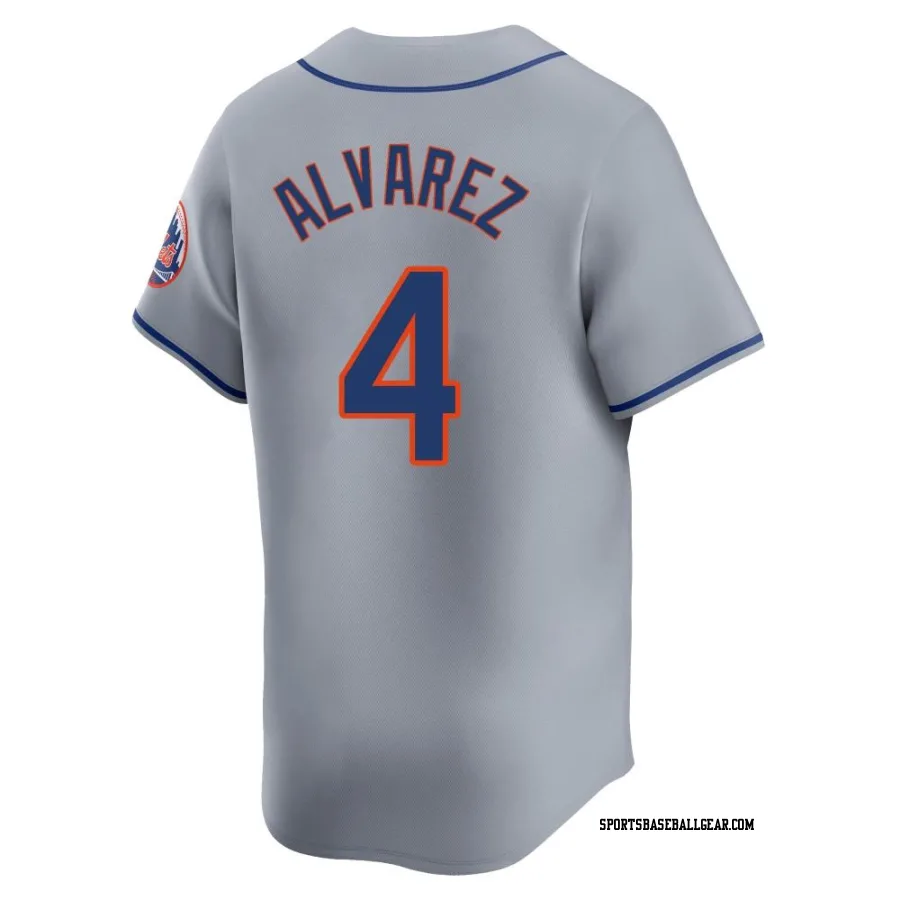 Get the Francisco Alvarez Men's New York Mets Gray Limited Away Jersey, showcasing the latest design and premium quality for dedicated fans. Elevate your baseball wardrobe now!