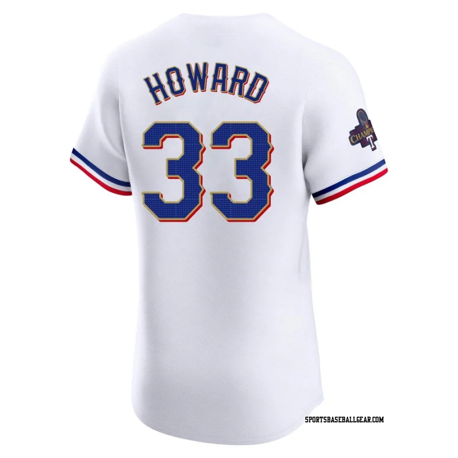 Get the Frank Howard Men's Texas Rangers Gold Elite White 2024 Collection Jersey, showcasing the latest design and premium quality for dedicated fans. Elevate your baseball wardrobe now!