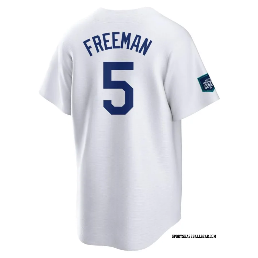 Get the Freddie Freeman Men's Los Angeles Dodgers White Replica 2024 World Tour Seoul Series Home Jersey, showcasing the latest design and premium quality for dedicated fans. Elevate your baseball wardrobe now!