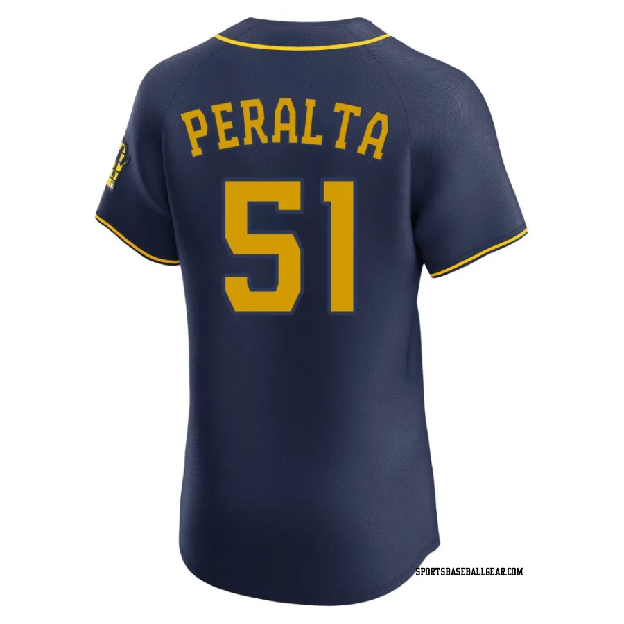 Get the Freddy Peralta Men's Milwaukee Brewers Navy Elite Alternate Jersey, showcasing the latest design and premium quality for dedicated fans. Elevate your baseball wardrobe now!