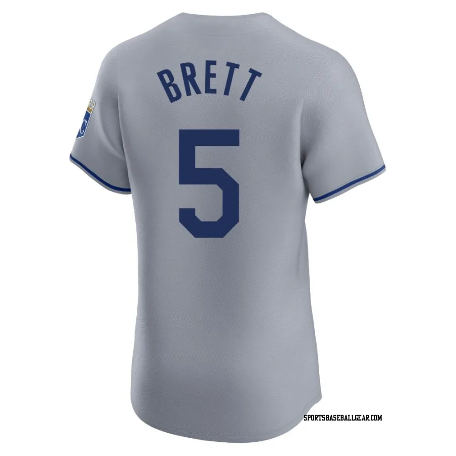 Get the George Brett Men's Kansas City Royals Gray Elite Road Jersey, showcasing the latest design and premium quality for dedicated fans. Elevate your baseball wardrobe now!