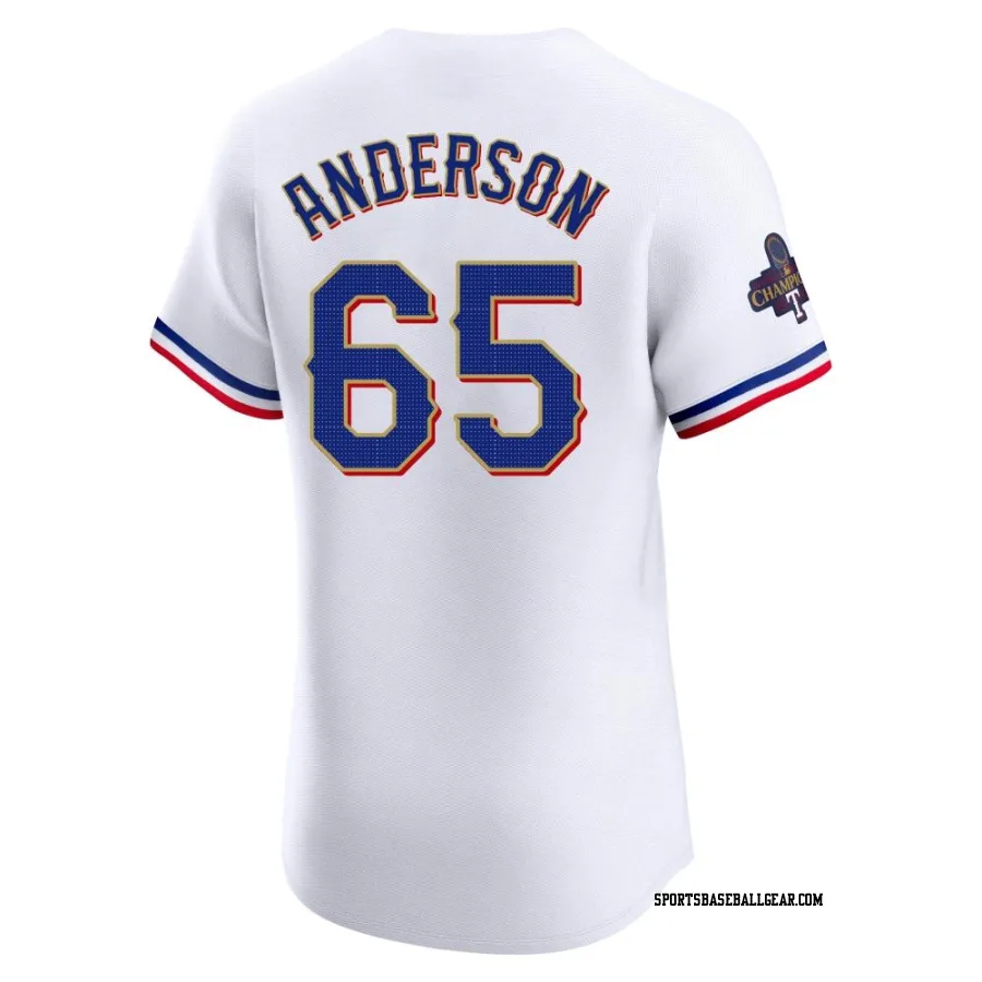 Get the Grant Anderson Men's Texas Rangers Gold Elite White 2024 Collection Jersey, showcasing the latest design and premium quality for dedicated fans. Elevate your baseball wardrobe now!