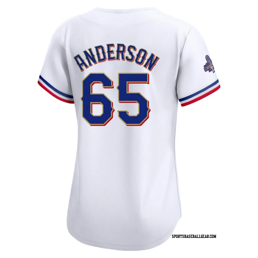 Get the Grant Anderson Women's Texas Rangers Gold Limited White 2024 Collection Jersey, showcasing the latest design and premium quality for dedicated fans. Elevate your baseball wardrobe now!