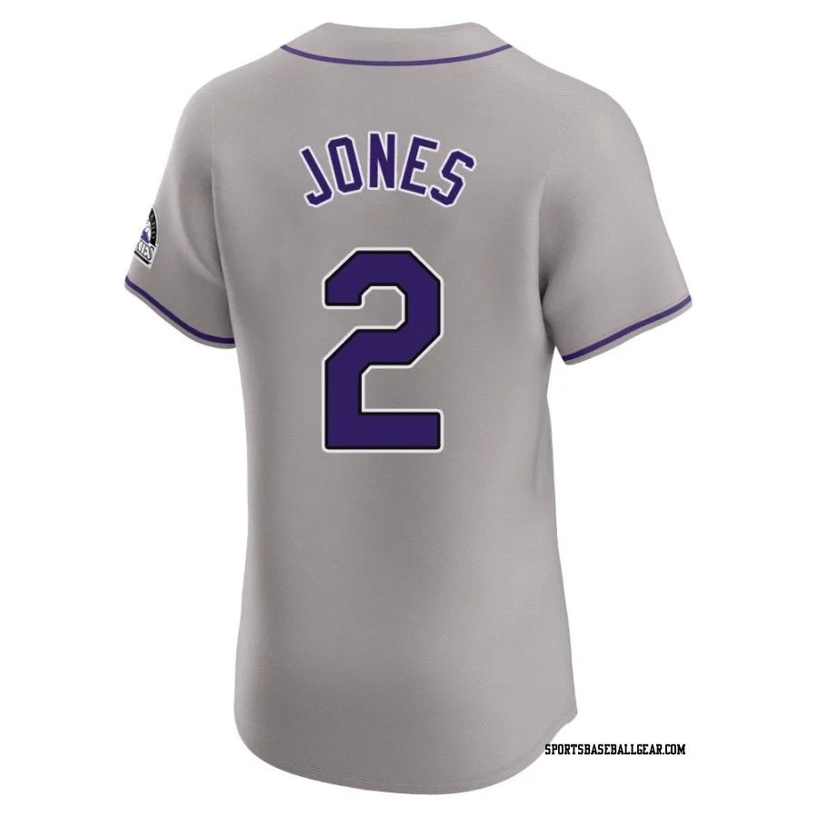 Get the Greg Jones Men's Colorado Rockies Gray Elite Road Jersey, showcasing the latest design and premium quality for dedicated fans. Elevate your baseball wardrobe now!