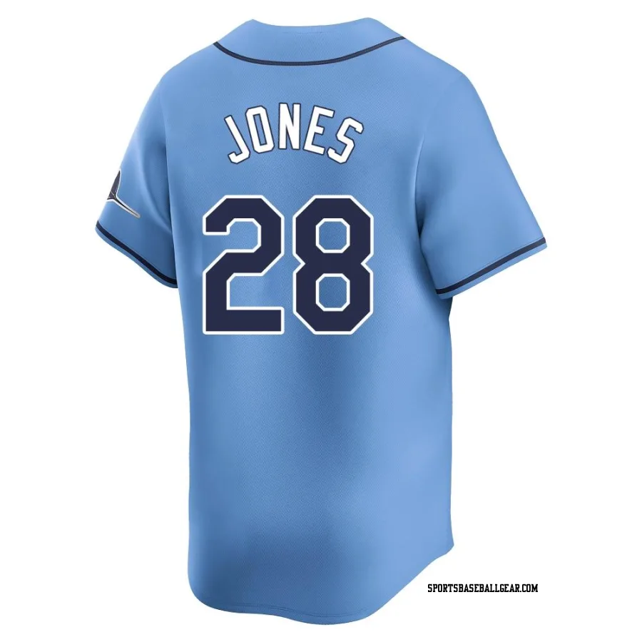 Get the Greg Jones Men's Tampa Bay Rays Light Blue Limited Alternate Jersey, showcasing the latest design and premium quality for dedicated fans. Elevate your baseball wardrobe now!