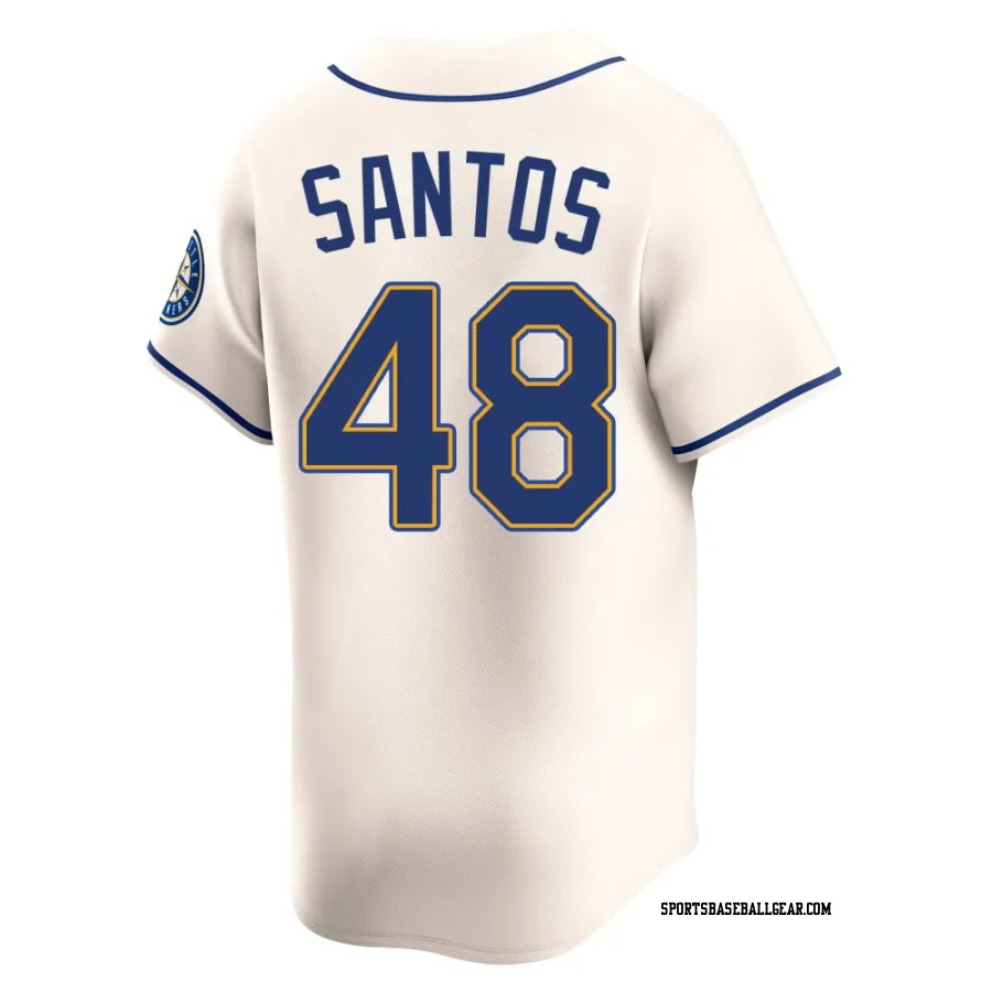 Get the Gregory Santos Men's Seattle Mariners Cream Limited Alternate Jersey, showcasing the latest design and premium quality for dedicated fans. Elevate your baseball wardrobe now!