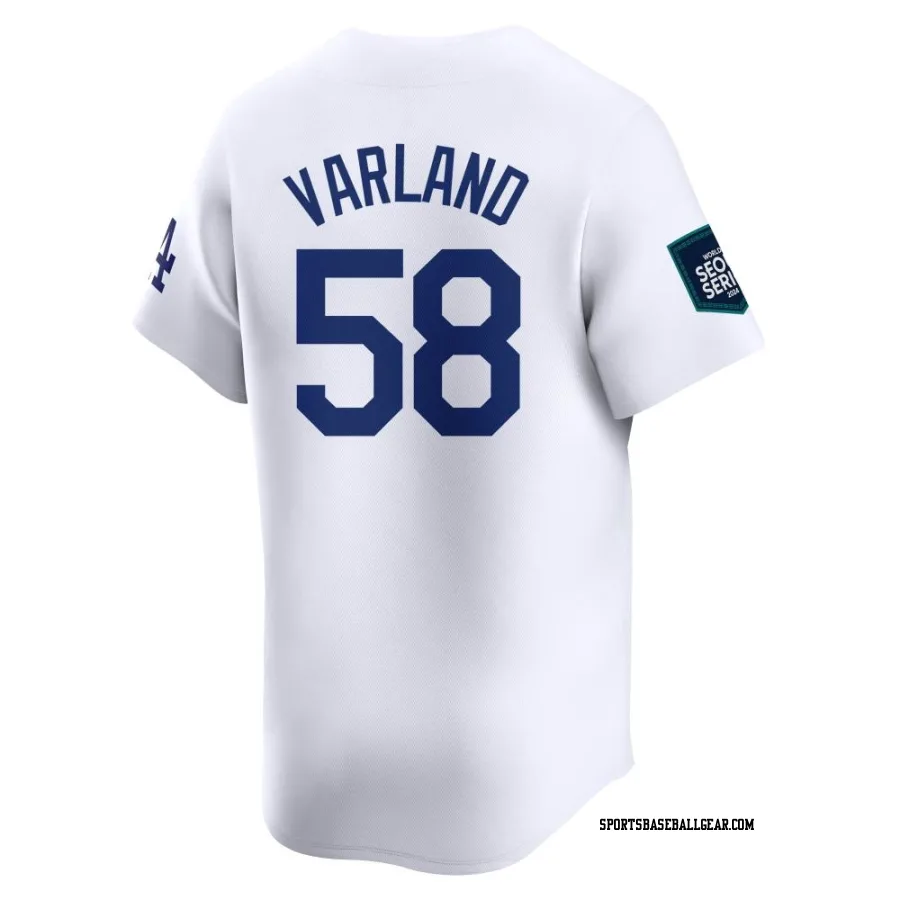 Get the Gus Varland Youth Los Angeles Dodgers White Limited 2024 World Tour Seoul Series Home Jersey, showcasing the latest design and premium quality for dedicated fans. Elevate your baseball wardrobe now!