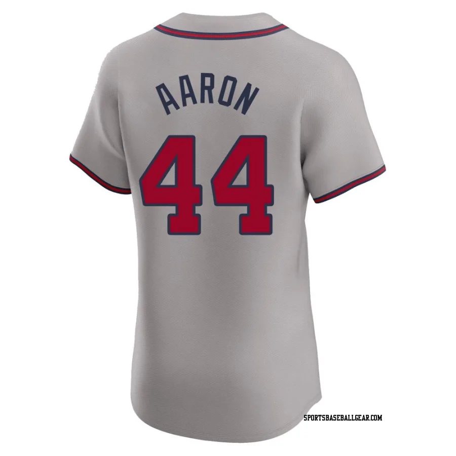 Get the Hank Aaron Men's Atlanta Braves Gray Elite Road Jersey, showcasing the latest design and premium quality for dedicated fans. Elevate your baseball wardrobe now!