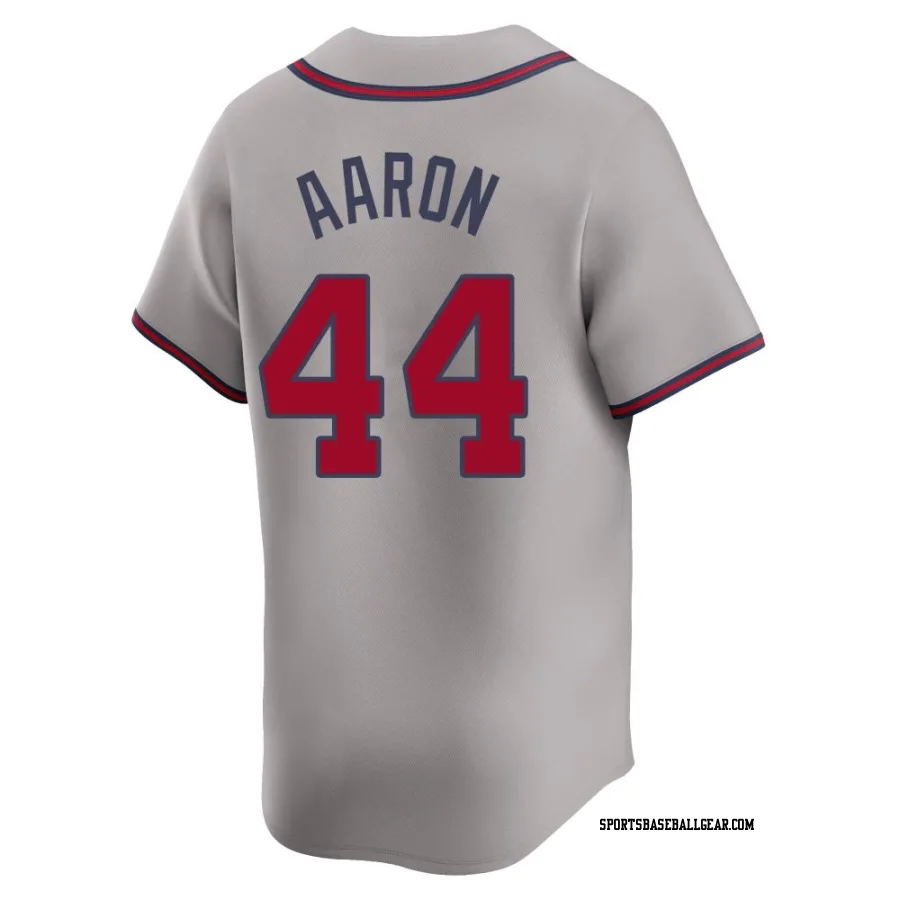 Get the Hank Aaron Youth Atlanta Braves Gray Limited Away Jersey, showcasing the latest design and premium quality for dedicated fans. Elevate your baseball wardrobe now!