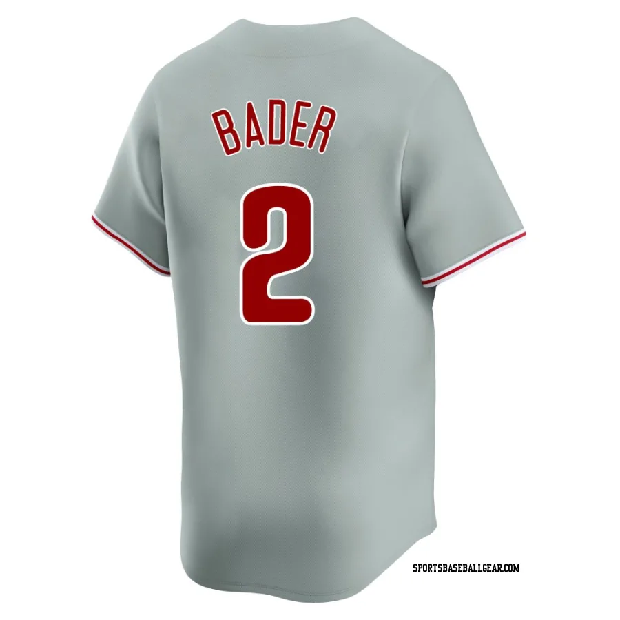 Get the Harrison Bader Youth Philadelphia Phillies Gray Limited Away Jersey, showcasing the latest design and premium quality for dedicated fans. Elevate your baseball wardrobe now!