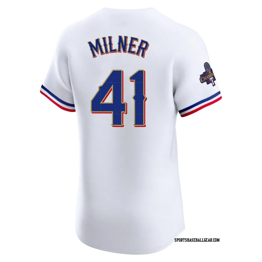Hoby Milner Men's Texas Rangers Gold Elite White 2024 Collection Jersey