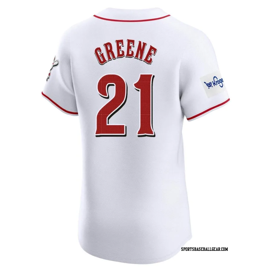 Hunter Greene Men's Cincinnati Reds White Elite Home Patch Jersey