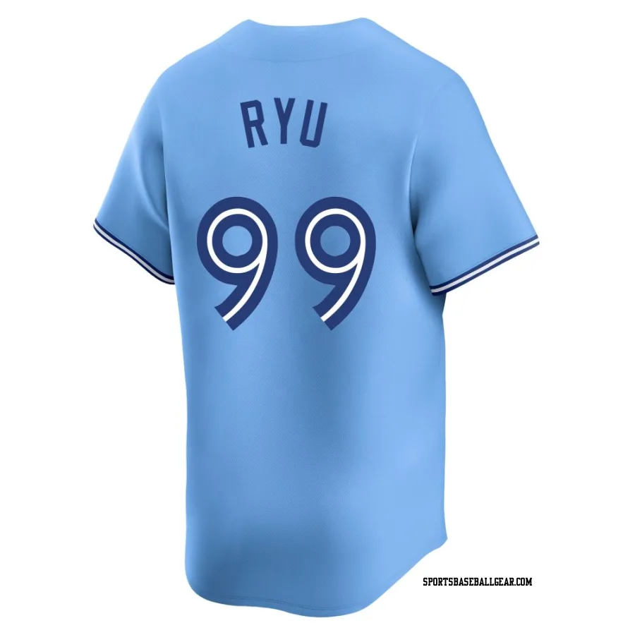 Get the Hyun Jin Ryu Youth Toronto Blue Jays Blue Limited Powder Alternate Jersey, showcasing the latest design and premium quality for dedicated fans. Elevate your baseball wardrobe now!