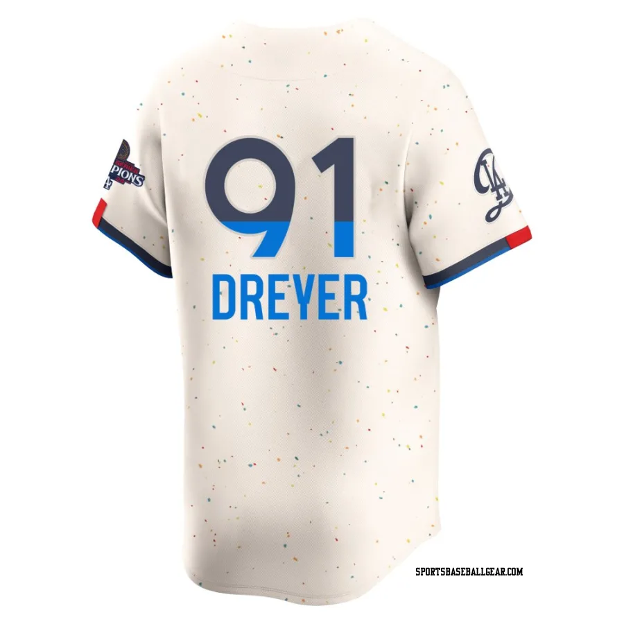 Get the Jack Dreyer Men's Los Angeles Dodgers Cream Limited 2024 City Connect World Series Champions Jersey, showcasing the latest design and premium quality for dedicated fans. Elevate your baseball wardrobe now!