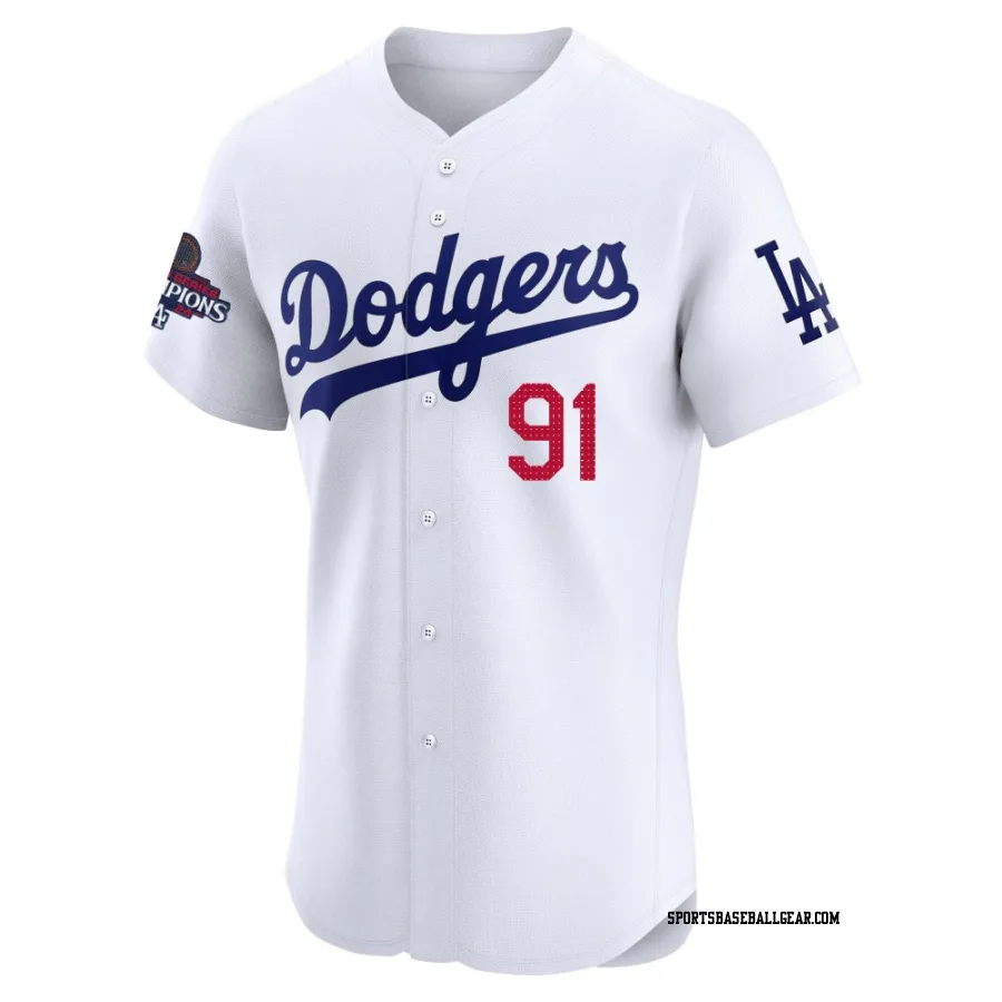 Get the Jack Dreyer Men's Los Angeles Dodgers White Elite Home World Series Champions Jersey, showcasing the latest design and premium quality for dedicated fans. Elevate your baseball wardrobe now!