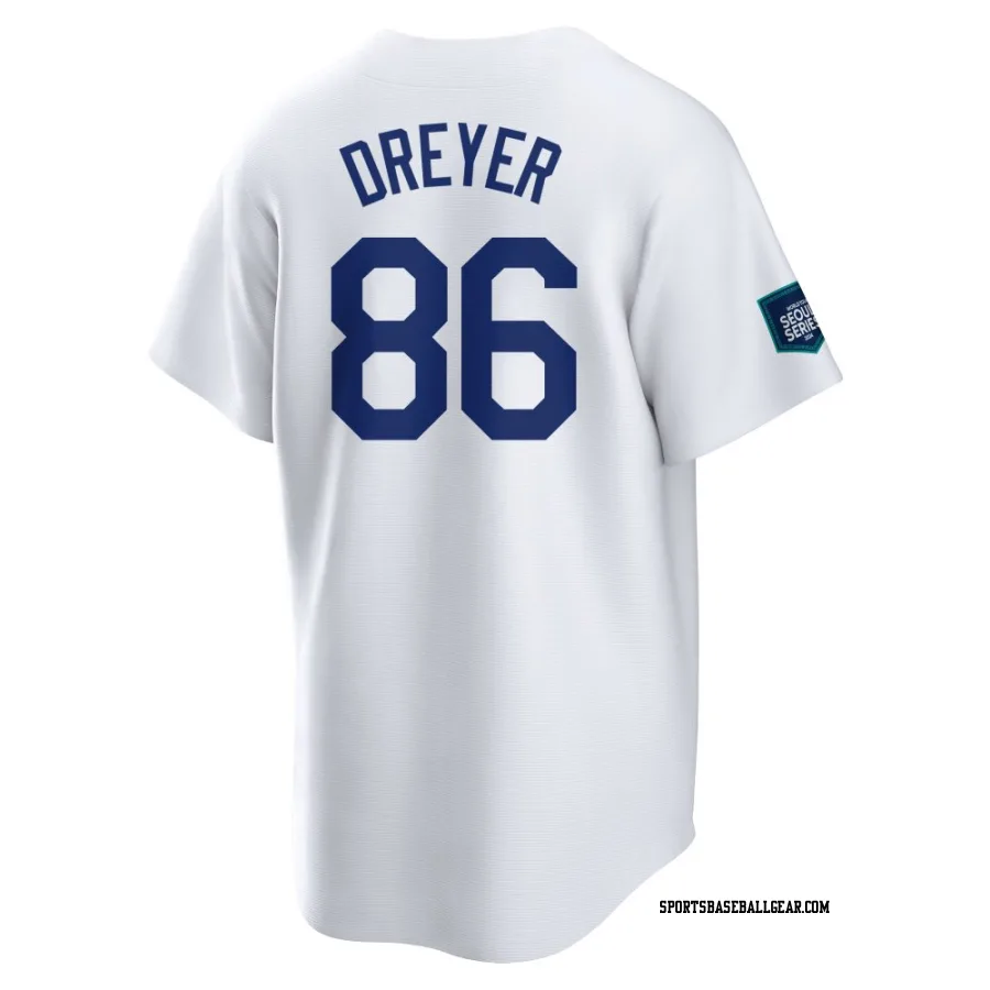 Jack Dreyer Men's Los Angeles Dodgers White Replica 2024 World Tour Seoul Series Home Jersey