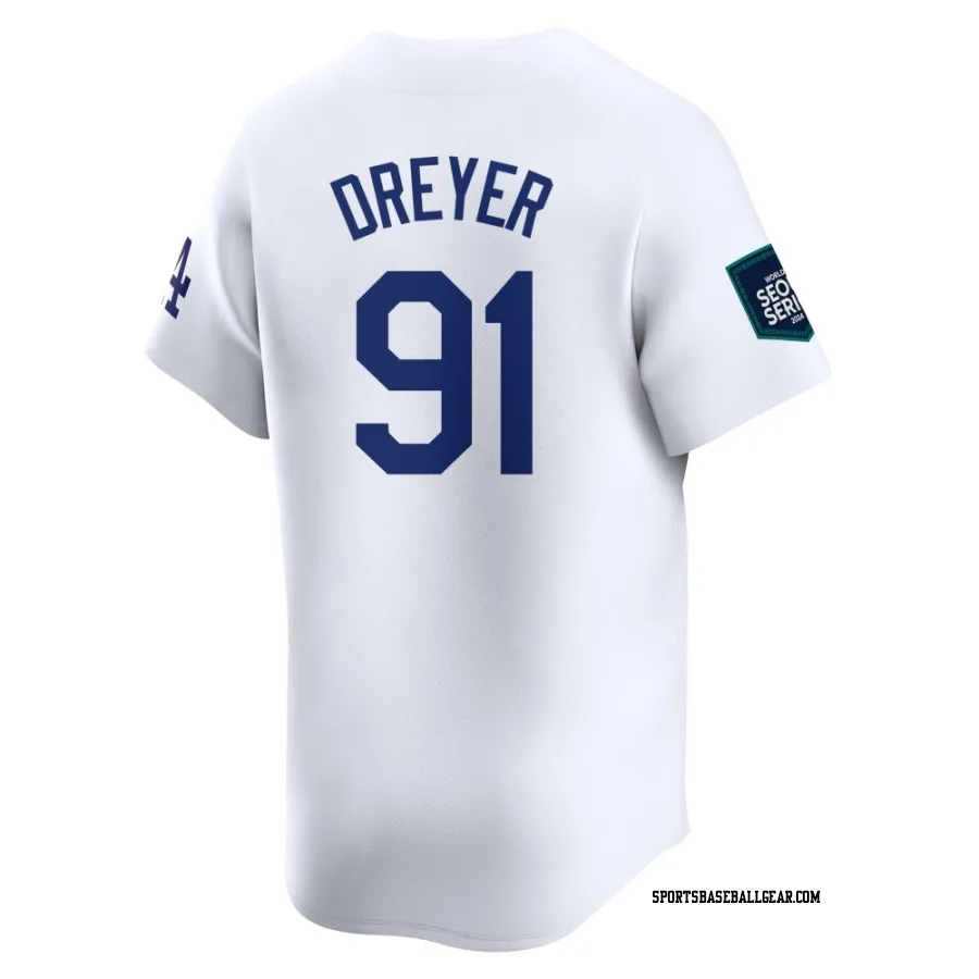Jack Dreyer Youth Los Angeles Dodgers White Limited 2024 World Tour Seoul Series Home Jersey