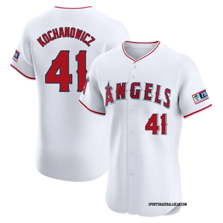 Get the Jack Kochanowicz Men's Los Angeles Angels White Elite Home Patch Jersey, showcasing the latest design and premium quality for dedicated fans. Elevate your baseball wardrobe now!