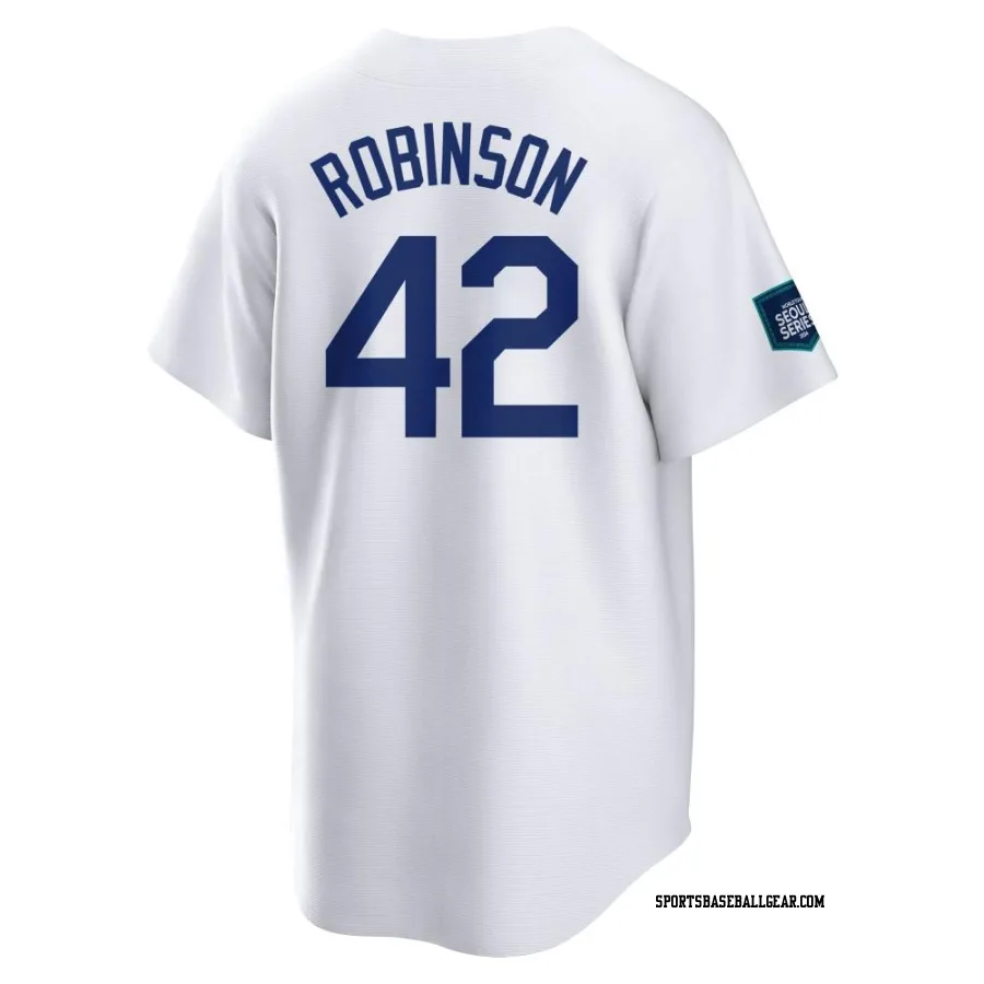 Jackie Robinson Youth Los Angeles Dodgers White Replica 2024 World Tour Seoul Series Home Jersey