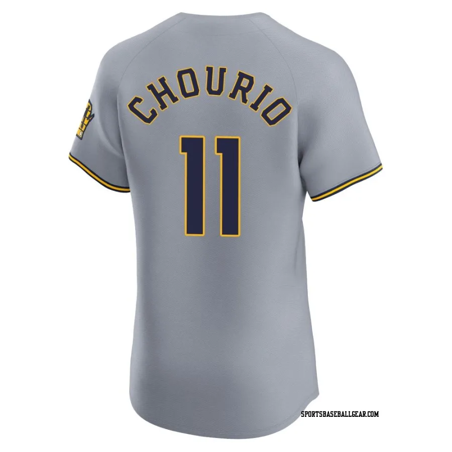 Get the Jackson Chourio Men's Milwaukee Brewers Gray Elite Road Jersey, showcasing the latest design and premium quality for dedicated fans. Elevate your baseball wardrobe now!