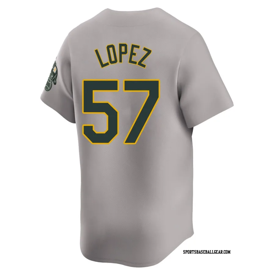 Get the Jacob Lopez Youth Oakland Athletics Gray Limited Away Jersey, showcasing the latest design and premium quality for dedicated fans. Elevate your baseball wardrobe now!
