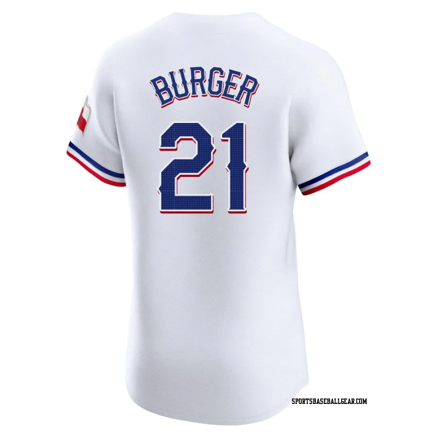 Get the Jake Burger Men's Texas Rangers White Elite Home Jersey, showcasing the latest design and premium quality for dedicated fans. Elevate your baseball wardrobe now!