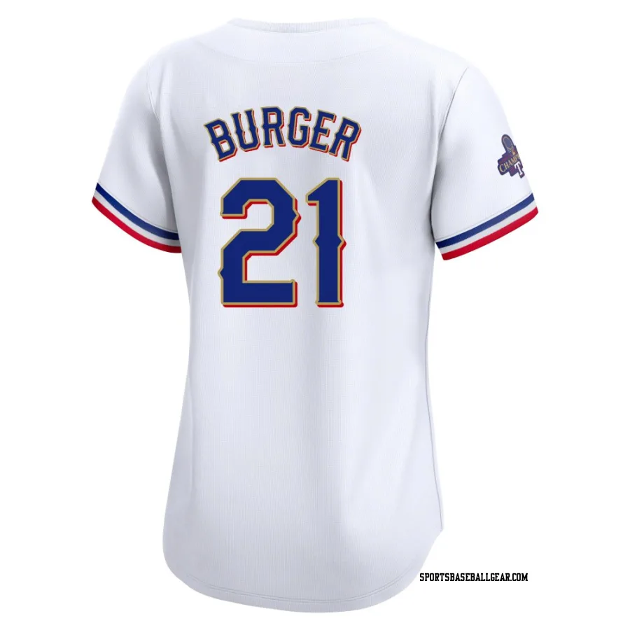 Get the Jake Burger Women's Texas Rangers Gold Limited White 2024 Collection Jersey, showcasing the latest design and premium quality for dedicated fans. Elevate your baseball wardrobe now!