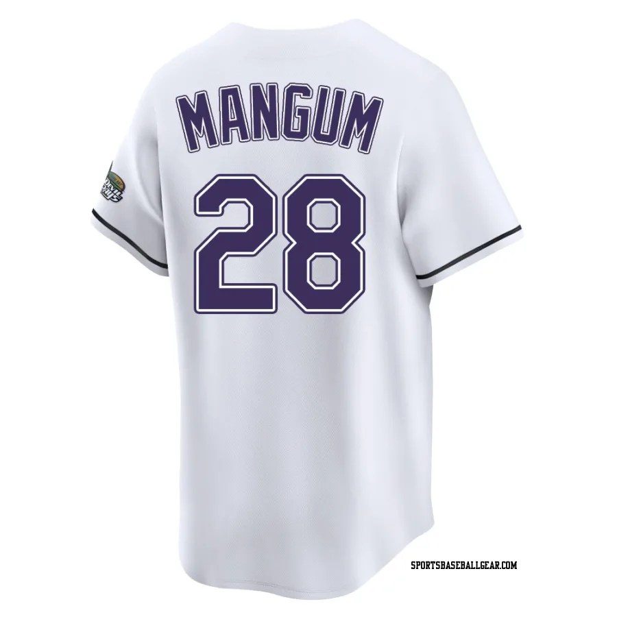 Get the Jake Mangum Men's Tampa Bay Rays White Limited Throwback Cooperstown Jersey, showcasing the latest design and premium quality for dedicated fans. Elevate your baseball wardrobe now!