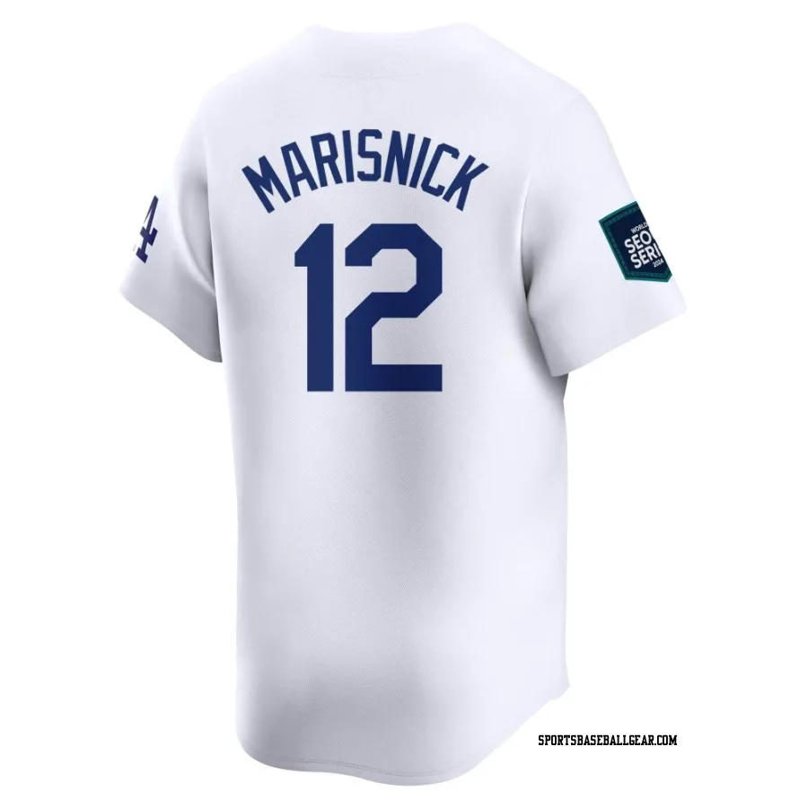 Get the Jake Marisnick Men's Los Angeles Dodgers White Limited 2024 World Tour Seoul Series Home Jersey, showcasing the latest design and premium quality for dedicated fans. Elevate your baseball wardrobe now!