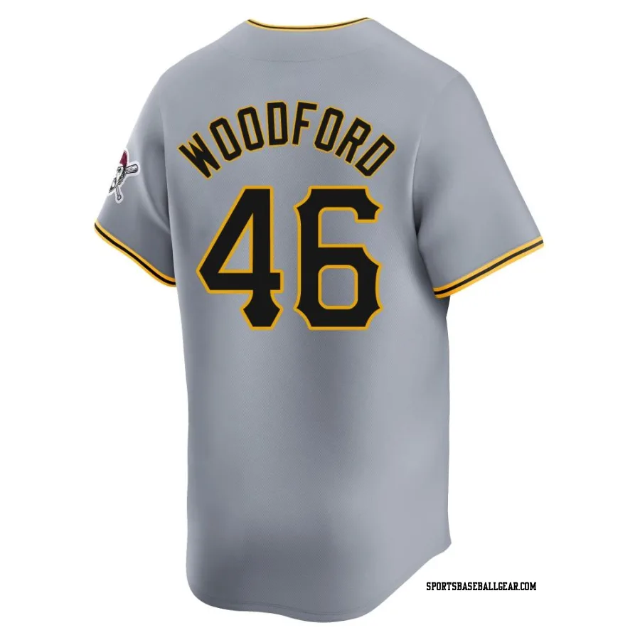 Get the Jake Woodford Men's Pittsburgh Pirates Gray Limited Away Jersey, showcasing the latest design and premium quality for dedicated fans. Elevate your baseball wardrobe now!