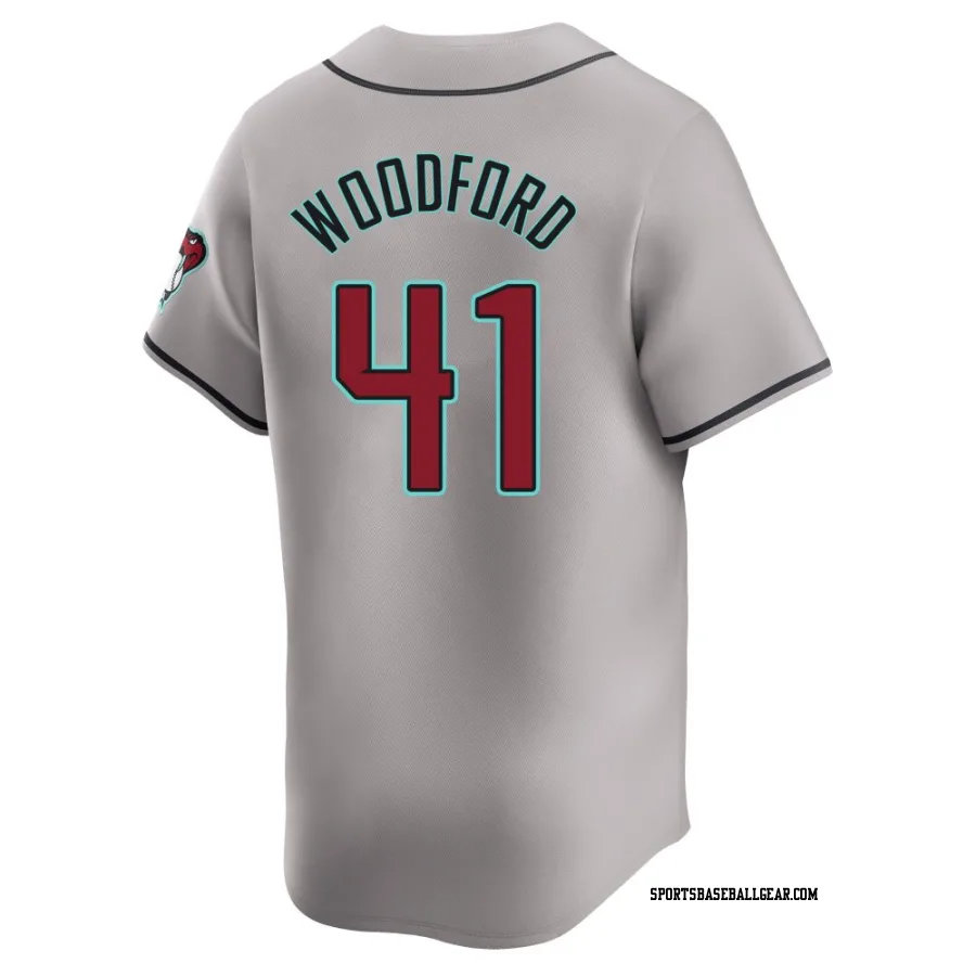 Get the Jake Woodford Youth Arizona Diamondbacks Gray Limited Away Jersey, showcasing the latest design and premium quality for dedicated fans. Elevate your baseball wardrobe now!