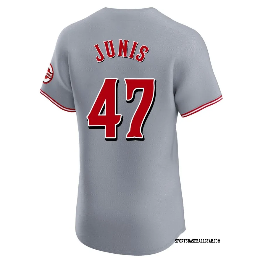Get the Jakob Junis Men's Cincinnati Reds Gray Elite Road Jersey, showcasing the latest design and premium quality for dedicated fans. Elevate your baseball wardrobe now!