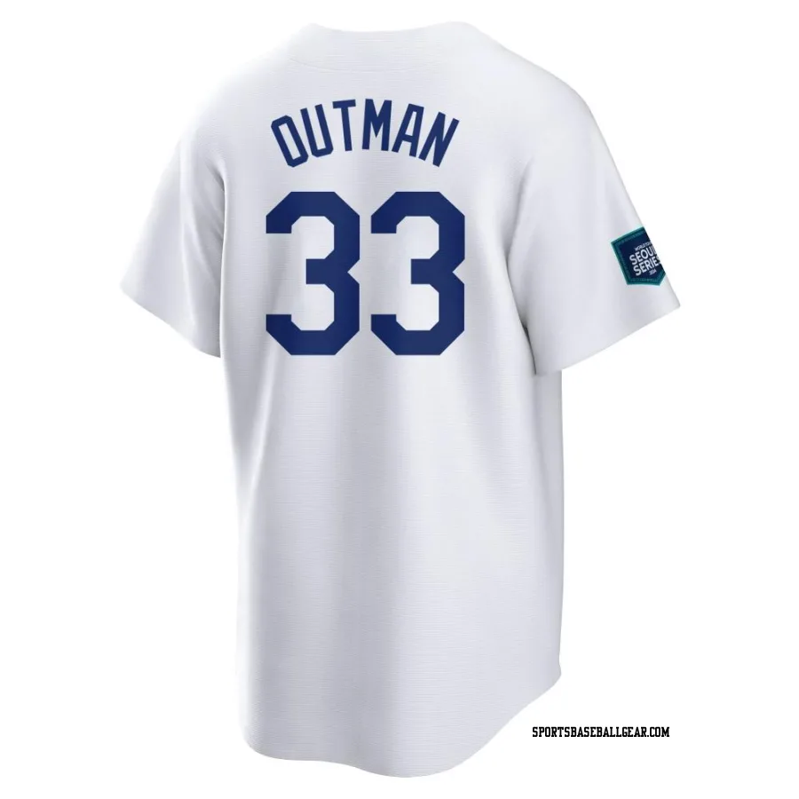 Get the James Outman Youth Los Angeles Dodgers White Replica 2024 World Tour Seoul Series Home Jersey, showcasing the latest design and premium quality for dedicated fans. Elevate your baseball wardrobe now!