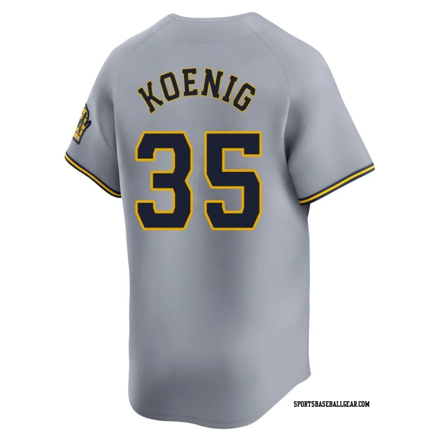 Get the Jared Koenig Youth Milwaukee Brewers Gray Limited Away Jersey, showcasing the latest design and premium quality for dedicated fans. Elevate your baseball wardrobe now!