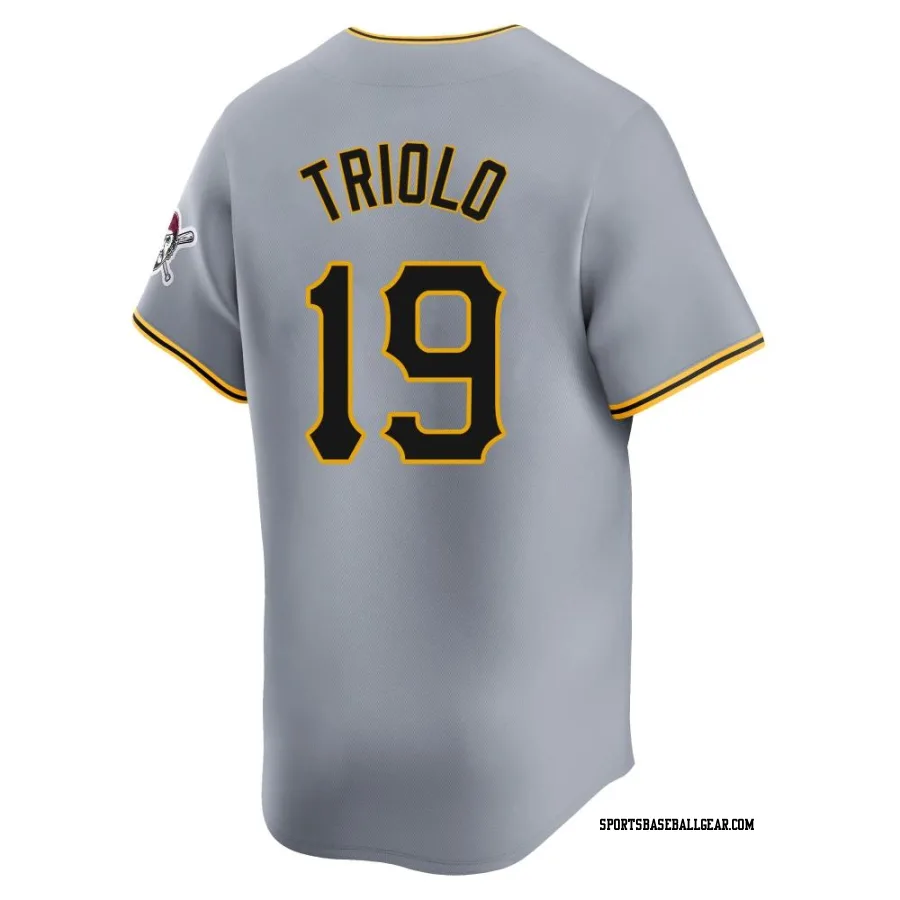 Get the Jared Triolo Men's Pittsburgh Pirates Gray Limited Away Jersey, showcasing the latest design and premium quality for dedicated fans. Elevate your baseball wardrobe now!
