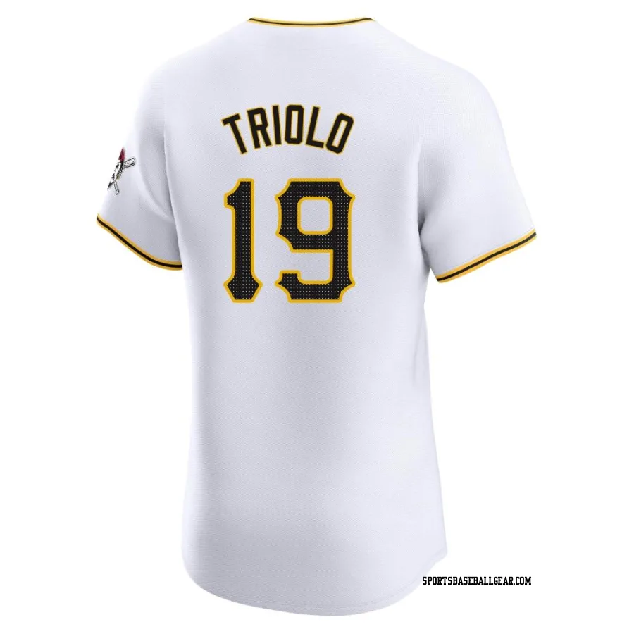Get the Jared Triolo Men's Pittsburgh Pirates White Elite Home Jersey, showcasing the latest design and premium quality for dedicated fans. Elevate your baseball wardrobe now!