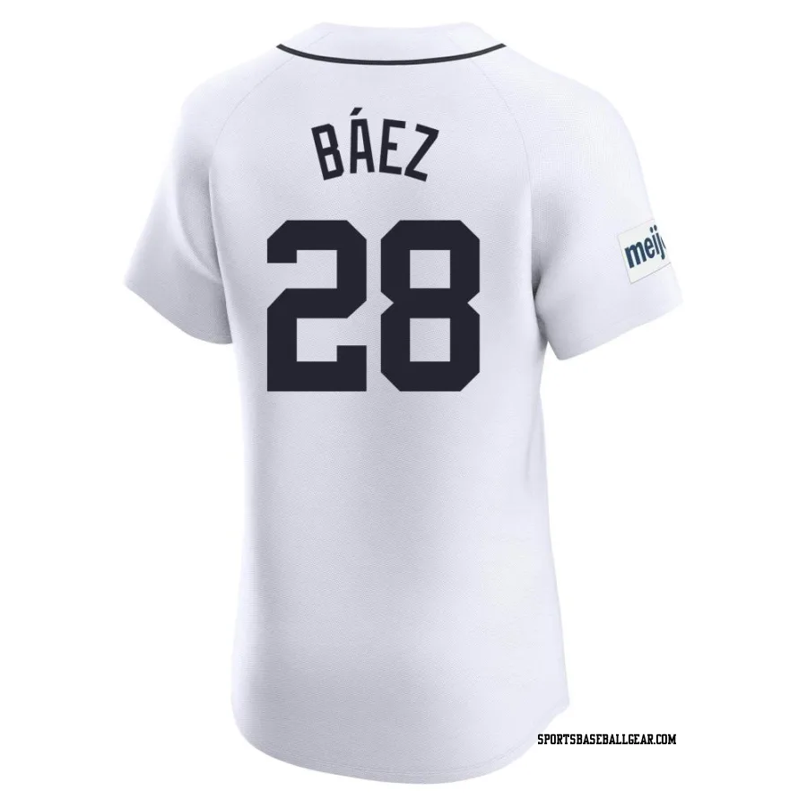 Get the Javier Baez Men's Detroit Tigers White Elite Home Patch Jersey, showcasing the latest design and premium quality for dedicated fans. Elevate your baseball wardrobe now!