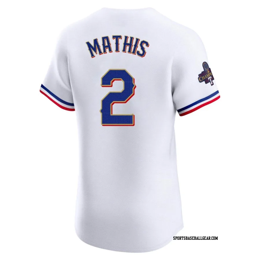 Get the Jeff Mathis Men's Texas Rangers Gold Elite White 2024 Collection Jersey, showcasing the latest design and premium quality for dedicated fans. Elevate your baseball wardrobe now!