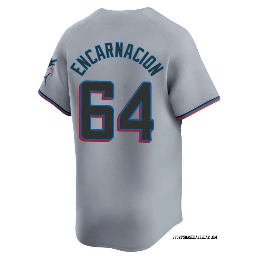 Get the Jerar Encarnacion Men's Miami Marlins Gray Limited Road Jersey, showcasing the latest design and premium quality for dedicated fans. Elevate your baseball wardrobe now!