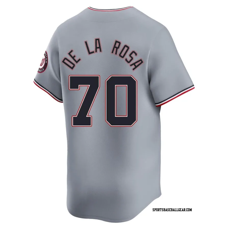 Get the Jeremy De La Rosa Men's Washington Nationals Gray Limited Road Jersey, showcasing the latest design and premium quality for dedicated fans. Elevate your baseball wardrobe now!