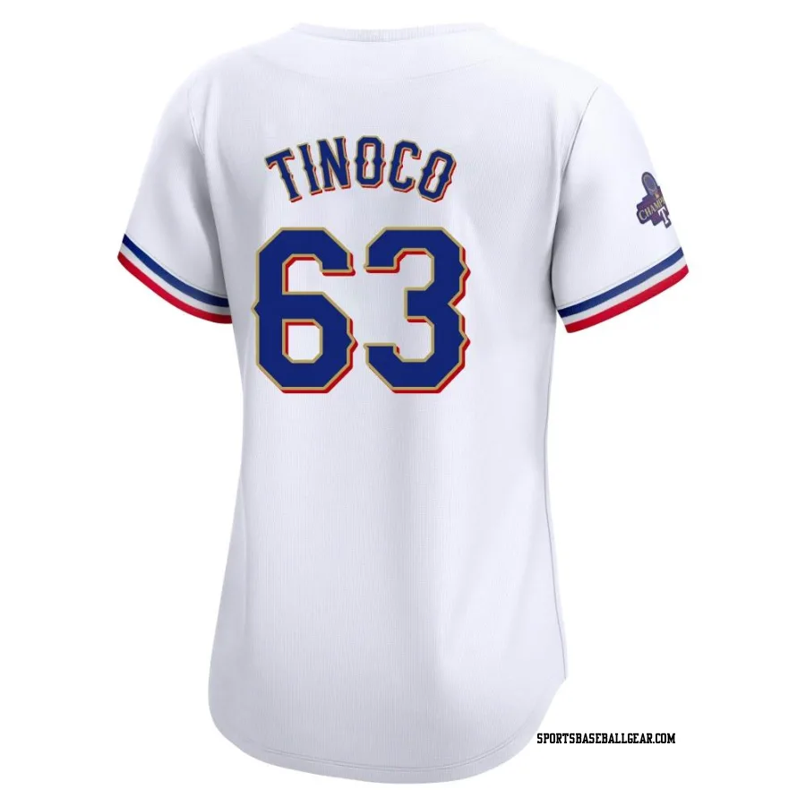 Get the Jesus Tinoco Women's Texas Rangers Gold Limited White 2024 Collection Jersey, showcasing the latest design and premium quality for dedicated fans. Elevate your baseball wardrobe now!