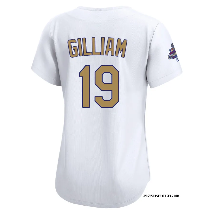 Get the Jim Gilliam Women's Los Angeles Dodgers Gold Limited White 2025 Collection Jersey, showcasing the latest design and premium quality for dedicated fans. Elevate your baseball wardrobe now!