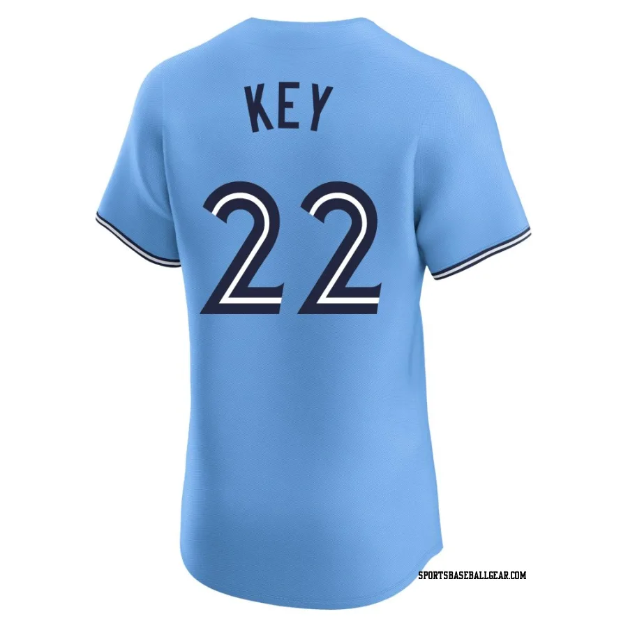 Get the Jimmy Key Men's Toronto Blue Jays Blue Elite Powder Alternate Jersey, showcasing the latest design and premium quality for dedicated fans. Elevate your baseball wardrobe now!