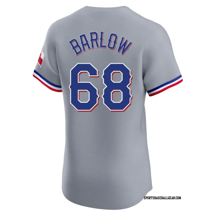 Get the Joe Barlow Men's Texas Rangers Gray Elite Road Jersey, showcasing the latest design and premium quality for dedicated fans. Elevate your baseball wardrobe now!