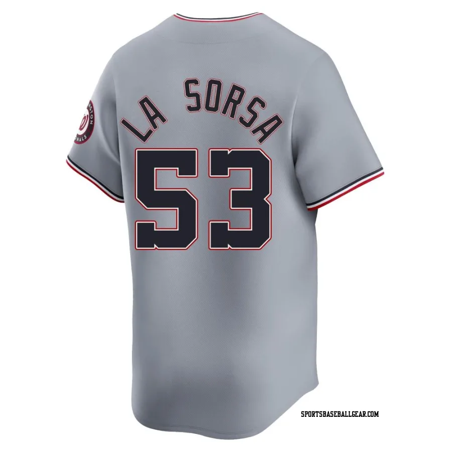Get the Joe La Sorsa Men's Washington Nationals Gray Limited Road Jersey, showcasing the latest design and premium quality for dedicated fans. Elevate your baseball wardrobe now!