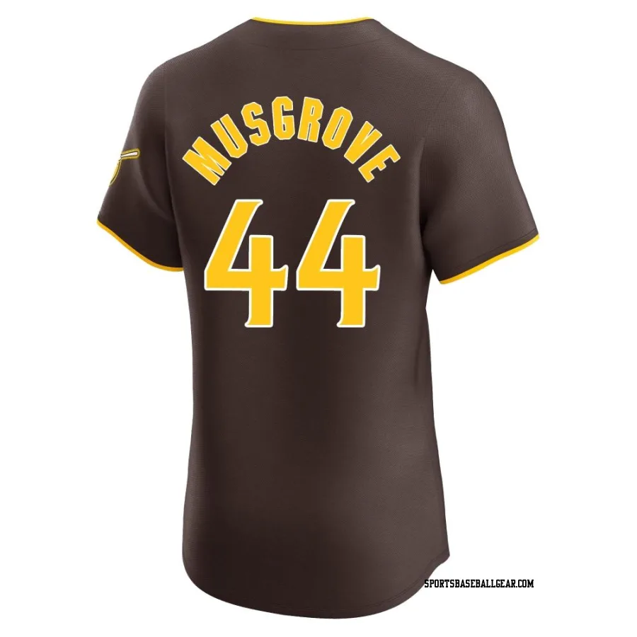 Get the Joe Musgrove Men's San Diego Padres Brown Elite Road Vapor Premier Jersey, showcasing the latest design and premium quality for dedicated fans. Elevate your baseball wardrobe now!