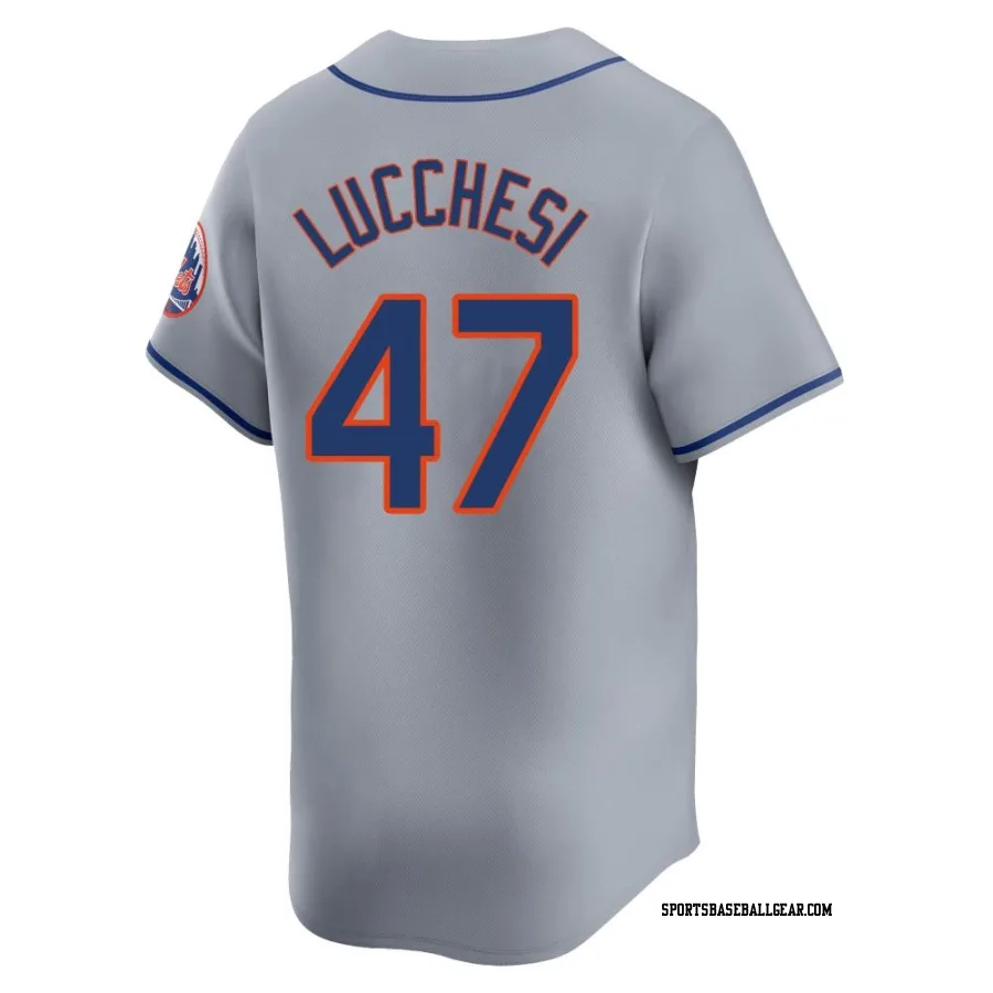 Get the Joey Lucchesi Men's New York Mets Gray Limited Away Jersey, showcasing the latest design and premium quality for dedicated fans. Elevate your baseball wardrobe now!
